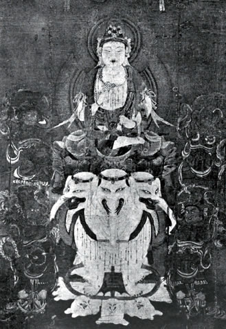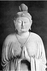 The characteristics of the Buddhist deities are represented chiefly by facial expression and bodily posture. A bodily expression is usually understood to be the natural way of moving the muscles of the face or other parts of the body, in response to the impulses of thought or feeling. Doubtless the foregoing is enough to indicate on what considerations the figures depicted in Buddhist art are based. Many of them show expressions common to every one; others conform to the usage of Asiatic peoples, and some others exemplify the more special mode of expression in suppression. This last is best seen in the figure of Fudo, a furious manifestation of the Great Illuminator, to whom allusion has already been made. His name means immobile or immovable, and he sits or stands, firm and motionless, surrounded by leaping flames. His arms are bent toward his body; his hands grasp tightly a sword and a rope; there is no attempt to suggest action; and yet the whole posture is expressive of the utmost energy. Another instance may be seen in the profound contemplation of the Great Illuminator. His whole body is in a perfect equipoise; his hands rest on his knees, his head is inclined a little forward, and his face is calm ''like the moon." There is no expression in the active sense, yet the figure tells of a fullness of wisdom which can be poured out without end. It is an infinite eloquence in silence. Nevertheless, the paradox implied in such a phrase is not real, inasmuch as the Buddhists have always trained themselves to reserve emotion and to restrain expression within the bounds of potentiality.