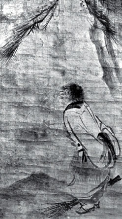 Shih-Te (Jittoku) By Gei-ami, Fifteenth Century Japanese, Ashikaga Idealistic School In the Museum of Fine Arts , Boston The recluse poet is here shown smiling at the moon. His besom lies on the ground at his feet. Painted in ink on paper and mounted as a kakemono.